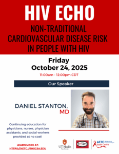 ![]() | HIV ECHO October 24, 2025 Daniel Stanton, MD is a physician with a passion for medical education, and HIV care. He also has interest in sexual health, MDR infections, global health, and general Internal Medicine. He is originally from the Dallas area, attended undergraduate at Texas A&M University, then completed his medical education and residency at the University of Texas Medical Branch in Galveston, TX, where he is currently completing his training in Infectious Diseases as Chief Fellow. Time: 11:00am to 12:00pm CT Register for this Training |